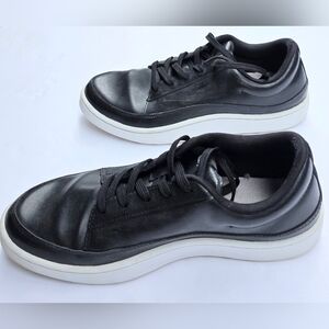 Vegan lblack sneakers with a white sole. Ideal for casual outings. Enjoy comfort and style. I good condition. water repellent