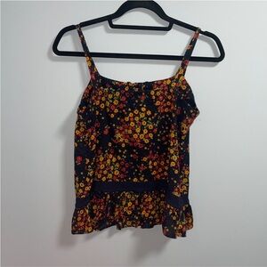 Allen B. Tank Size Medium Floral Print Adjustable Straps 100% Cotton Body