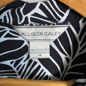 Allison Daley Black + White Abstract Leaf Short Sleeve Button Up Blouse Size 14