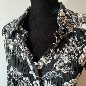 Allison Taylor Black & White Floral Blouse sz M