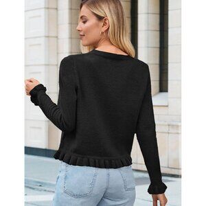 FEATURES: This cardigan sweaters for women stand out its ruffle design. Button down womens sweaters; Open front womens cardigan; Long sleeve ruffle sweaters; Crew neck sweater women; Short ladies sweaters; Cropped womens cardigan sweaters; Soft knit sweaters for women; Fall cardigan for women