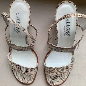 Allons Snakeskin Pattern Leather Sandal With Block Heel Size 6.5