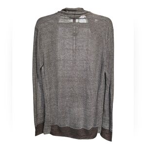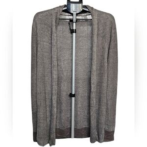 Long, lightweight 100% linen cardigan. The colour is a greyish brown.