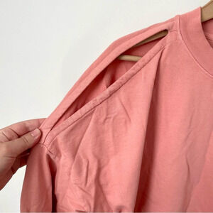 Allsaints Unai Oversized Cold Shoulder Sweatshirt Pink. The Unai Sweatshirt is crafted to an oversize fit with an acid wash for an authentic vintage finish. Featuring open cut-out shoulders to complete the silhouette. Super soft, 100% cotton. Size small, fits oversized. Excellent condition other than a small spot on the back shoulder that I think could come out with stain treatment in the wash.