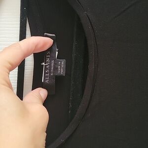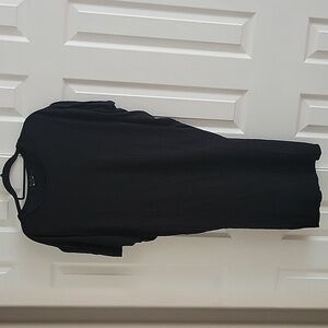 Its gently worn design adds character and a lived-in feel. The dress is tailored to be tight at the hips, offering a flattering fit, while the relaxed top provides comfort and ease of movement. Crafted from viscose, it drapes beautifully and feels soft against your skin. The classic black color is a timeless choice that allows for versatile styling. This dress is in excellent condition, free from any stains or tears, reflecting its quality and care.