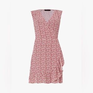 🎀 Allsaints Krystal red and white sleeveless floral print ruffle wrap dress sml