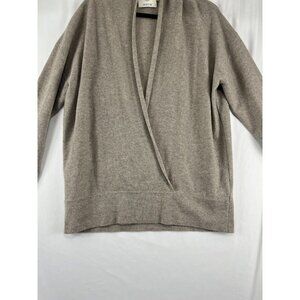 Allude Beige Cashmere Crossover Deep V-Neck Women's Sweater