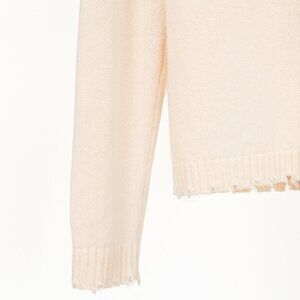 Allude Cream Wool & Cashmere Distressed V-Neck Cardigan