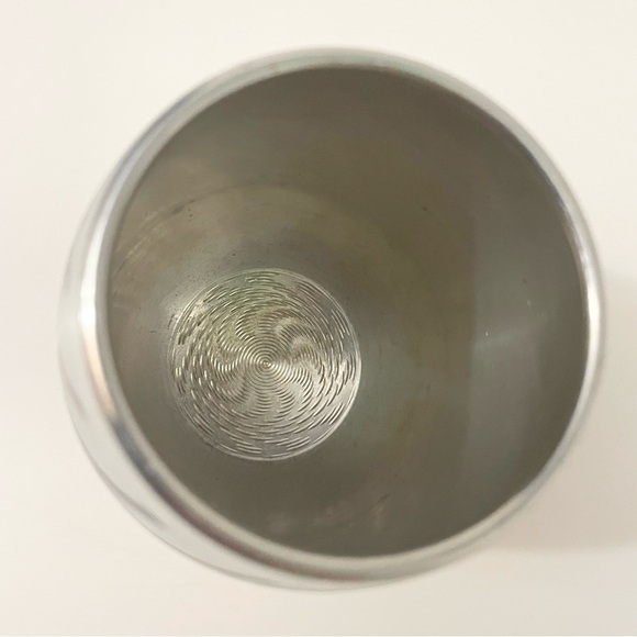This cup is pre-owned and in used condition. There are some scratches on the outside and some marks and scratches on the inside. The bottom has marks and scratches as well. Please see all photos for exact cup.