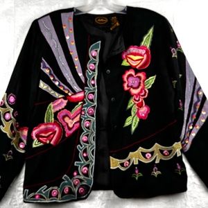 Black Based Beautiful multi color embroidered and embellished with beads stunning Jacket lined and button up style.