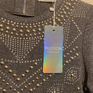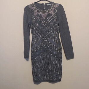 🤍⭐️Stunning flattering fit chic style Allyson collection Grey sequins embellished long sleeve sweater dress Sz M/ L approx measurements photographed same day shipping from smoke free home