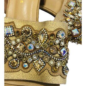 Alma en Pena Slide Sandals Bejeweled Chunky Block Heel Size 39