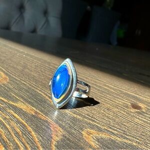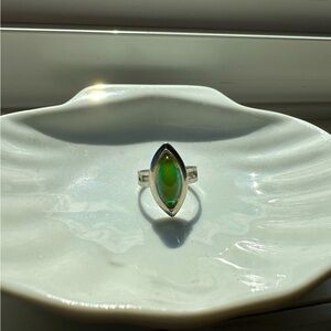 Beautiful almond shape mood ring. Has extremely vibrant colours. Adjustable band. Perfect statement piece.