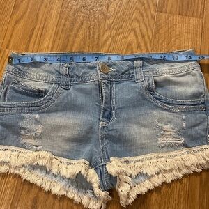 Almost Famous Distressed Denim Shorts White Fringe Women’s (Size 7)
