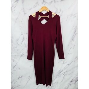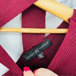 Almost Famous Ribbed Criss Cross Long Sleeve Dress