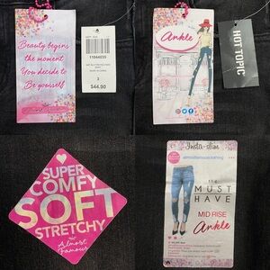 Features: the must have, insta-slim, mid rise ankle, super comfy, soft, stretchy, metal spike rivets detailing, distressed, studded waistband, long fringe raw hem, belt loops, 2 back pockets, 2 front pockets, 1 coin pocket, zipper fly and button closure, black, slightly faded, trendy, stylish, casual, western, work, school, businesses casual, punk, grunge, streetwear