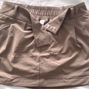 Alo Fan Club Mini Skirt in size Medium. Made from matte woven performance fabric with a medium-rise fit. Designed with functional belt loops, front pleats, straight back pockets, and a hidden internal brief for comfort. A versatile piece that can be dressed up or styled casually. Excellent condition.