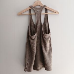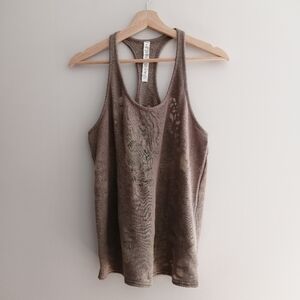 "It's simple, it's sleek, it's incredibly chic. Featuring a low-cut scoop neck, racer back shape and a choice of distressed French terry or variegated rib fabric, The pure tank is perfect for transitioning to and from practice.