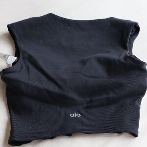 Alo Yoga Ribbed Sweetheart Short Sleeve Shirt in Black