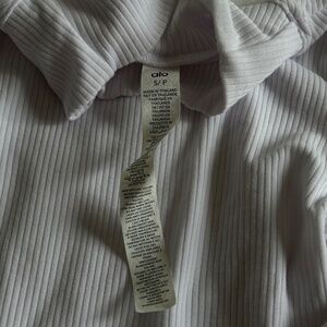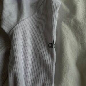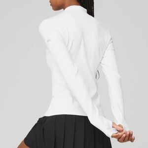 A chic and versatile staple from Alo Yoga, crafted in their signature wellness rib fabric for a sleek, flattering fit. Features a modern mock neck and a clean, minimalist silhouette that works for studio, street, or lounge. The long sleeves have been thoughtfully tailored by a professional to remove the arm holes for a more unique, easy-to-layer style—perfect for transitional wear.
