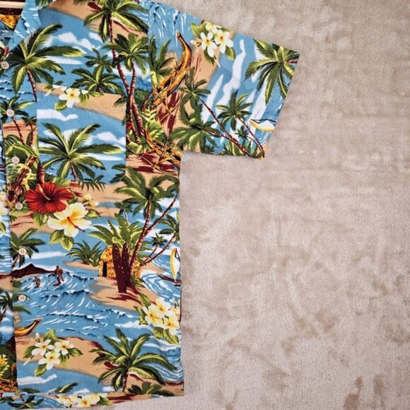 Aloha Joe Hawaiian Shirt Men Size M Maui Coconuts Palm Trees Floral Short Sleeve