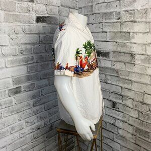Embrace the laid-back island vibe with the Aloha Mo'i Hawaii Men's Retro Button-Up Shirt. This classic white woven shirt, accented with a vibrant graphic print of beach cars and a surfboard, captures the essence of summer and spring adventures. A comfortable large size ensures a relaxed fit for all body types, while the spread collar and short sleeves maintain a timeless, preppy look. Crafted from breathable cotton and designed for easy care, this shirt is ideal for various occasions, from casual outings to cocktail parties, or even as a travel companion. The lightweight fabric and practical features like pockets make it a versatile addition to your wardrobe, perfect for those who appreciate a blend of retro style and functional fashion.