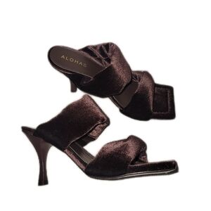 Alohas Twist Strap velvet sandals heels Mule brown 37 6.5