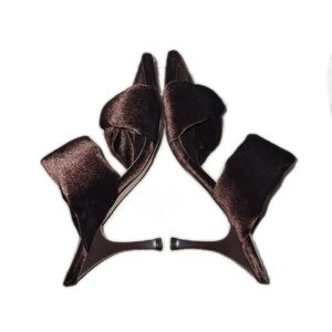 Alohas Twist Strap velvet sandals heels Mule brown 37 6.5