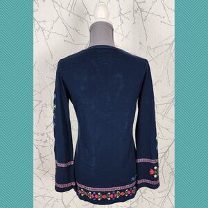 Alp n Rock Navy Cotton Floral Embroidered Bohemian Popover Tunic