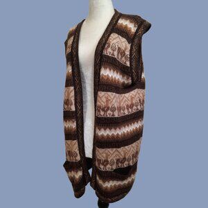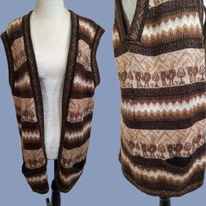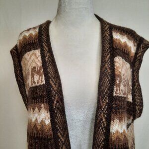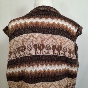 Alpaca Fina Long Sleeveless Cardigan Peruvian Sweater Vest Brown Beige Size M
