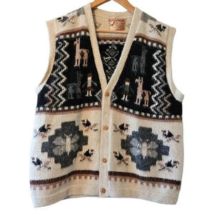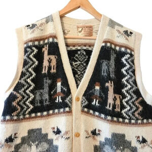 Alpaca Import Peruvian Hand Made Knitted 100% Alpaca Aztec Boho Y2K Vest Sz L