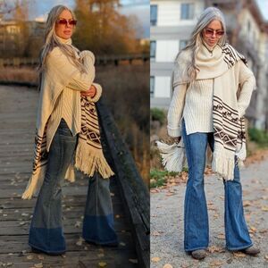 Very large cuddly fringed shawl. Clean off white & chocolate colorway. In new unused condition, freshly washed & hung no flaws. It's quite large!