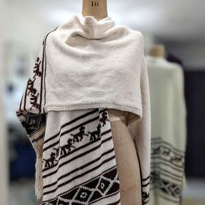 Very large cuddly fringed shawl. Clean off white & chocolate colorway. In new unused condition, freshly washed & hung no flaws. It's quite large!