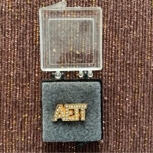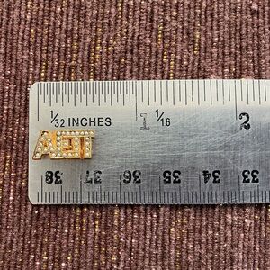 Alpha Epsilon Pi pin. Gold plated with small pearls. Authentic vintage fraternity pin.