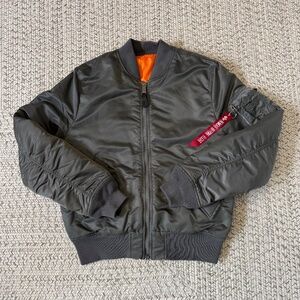 Pre-Owned Alpha Industries Slim Fit MA-1 Flight Bomber Jacket In Gunmetal Colour - Size Large.