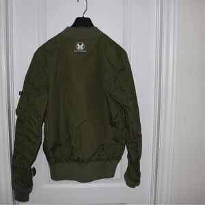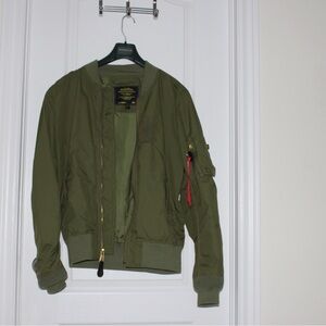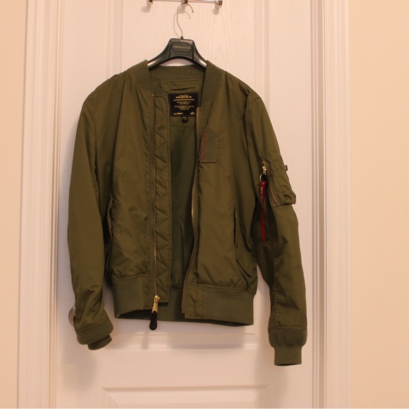 Stay stylish and warm with the Alpha Industries Men's Green Bomber Jacket. This classic piece features a sleek design and durable construction, perfect for any occasion.