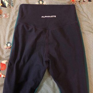 Sorry about the lighting! They're similar to Aligns in that they're both brushed and very soft, but are definitely more compressive. The waistband is more tapered than Aligns as well (third photo; size 4 Aligns behind for comparison).