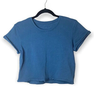 Alphalete Teal Blue Cropped Crewneck Sweater Tee