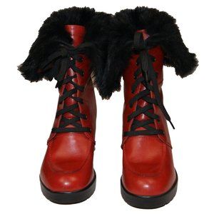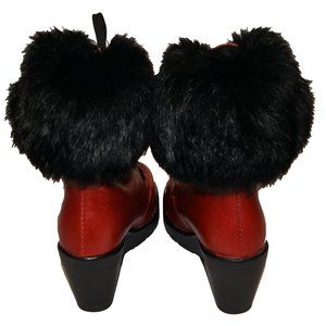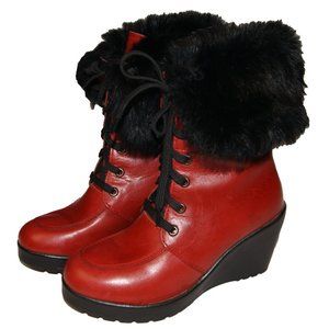 Alpi Sole Women's 36 Red Leather Black Fur Wedge Heeled Winter Boots