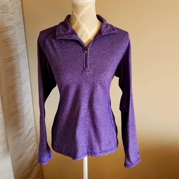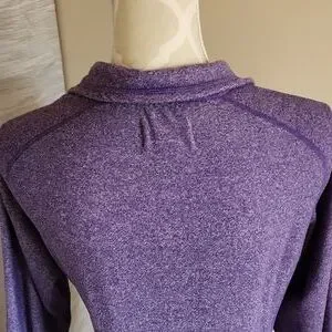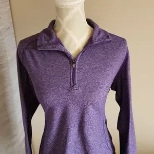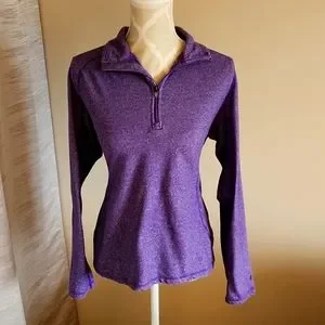Sweater is in excellent used condition. Beautiful purple colour. Zips up in top front, pullover Sweater.