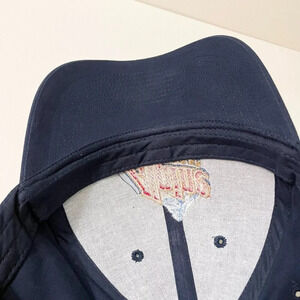 This hat was never worn but has some creases from storage. There is a small white mark above the logo on the front. Please see all photos for exact hat.