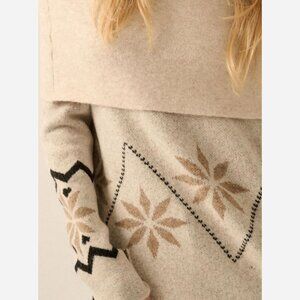 The Alpine Off Shoulder Sweater blends cozy comfort with a touch of elegance. Featuring a relaxed fit, this patterned knit sweater showcases a charming alpine floral design and an oversized foldover collar that can be styled off the shoulder for a chic, feminine silhouette.