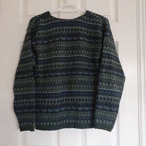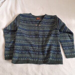 Alps Vintage Women's Size Small Green Blue Stripe Knit Zip Up Cardigan Sweater