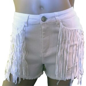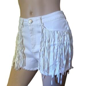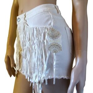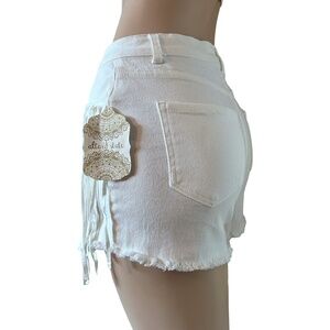 Altar'd State Fringe Shorts Hippie Stretch Denim Cowboy Moto Hi Waist Distressed