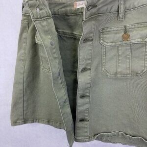Altar’d State Mini Skirt Womens Small Green Button Up Pencil Front Pockets Denim