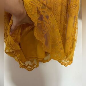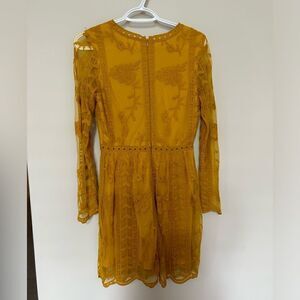 Altar’d State Tabatha Mustard Yellow Golden Long Sleeve Lace Mini Dress