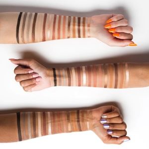 A 15 color eyeshadow palette featuring a mix of matte and metallic shades with burgundies, browns, greys, and black. Cruelty-free and paraben-free.