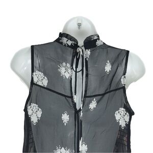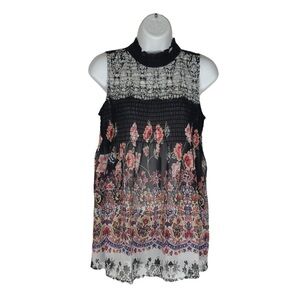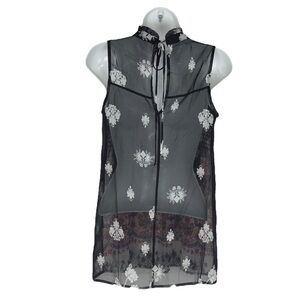 Alter’d State Black Semi Sheer Floral Smocked Sleeveless Keyhole Top Small