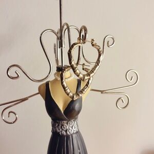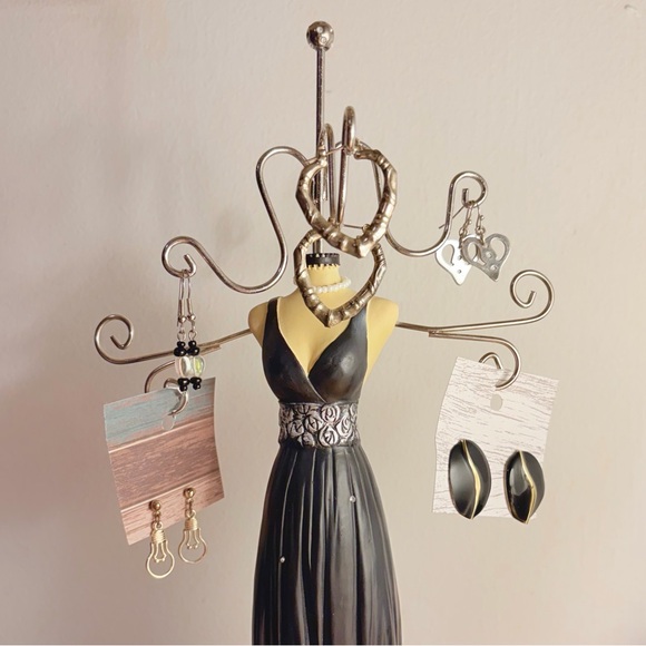 Variety set of 5 earring pairs featuring mixed metals. Good used condition, unknown materials