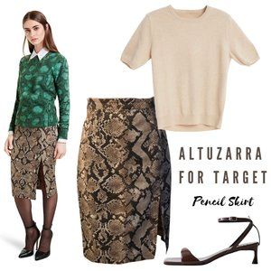 Altuzarra brown snake print pencil skirt with a side slit and back zipper.